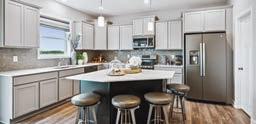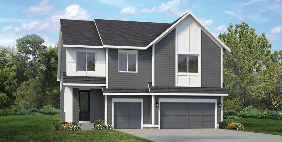 Hidden Creek is our newest community in the beautiful city of Forest Lake! Enjoy the beautiful lakes, the small-town feel, and family friendly amenities. We designed this home with a thoughtful layout that features functional living spaces, natural lighting throughout, an updated kitchen, and spacious bedrooms. The main level boasts vaulted ceilings, an open concept kitchen, dining, and great room with a replace option, and three bedrooms including the owner’s suite which is set o from the rest of the home by a few extra steps. The nished lower level includes a flex room, a family room, two bedrooms and a full bath!