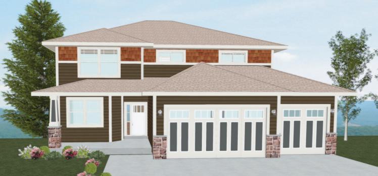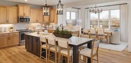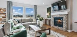 The “Norway Pine” plan in our Cli ’s Falcon View Development sits on 2.82 acres, yet close to freeway access for that daily commute. This three-bedroom, two-bath home has an open-concept floor plan.