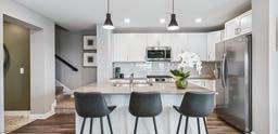 New multi-level townhomes with a spacious KT, large center island and quartz countertops, bedroom suite with private bath and walk-in closet, plus an o ce space in lower level. Dog park close by!