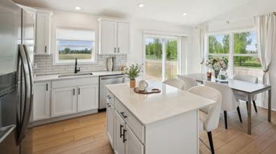 Enjoy association-maintained homes in a prime location with trees and ponds! The Riley model features a modern kitchen, shiplap replace, luxurious primary suite, 3-season porch and walkout basement.