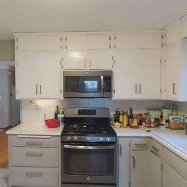 A completely redesigned main level includes a welcoming entry, formal and informal dining rooms, powder room, mudroom/laundry room, and fully remodeled kitchen. Enlarged arched doorways open the home. Custom built-ins in the dinette and mudroom create a functional and beautiful space for the family. A new quartz island replaces the old peninsula and provides seating for four at the snack counter. A mix of soft white and neutral tones creates a warm, contemporary and cohesive feel throughout. See for yourself when Plekkenpol Builders remodels your home, “The Di erence is in the Details.”