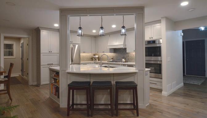 As grandparents, having everyone together at your home is wonderful. Making the space even better to enjoy everyone while they are there priceless. Taking down a large wall and reengineering the weight load is central to this Eden Prairie main-level remodel done in relaxing earth tones. Now, Grandma and Grandpa can be a part of the conversation and shenanigans during meal prep and clean-up, too. The lower level was nished to create a family room, guest area, and bathroom. Added bonuses to the 2002 townhome are a walk-in pantry and entryway alcove. Come see the details for yourself and learn why “Welcome Home!” is even sweeter now!