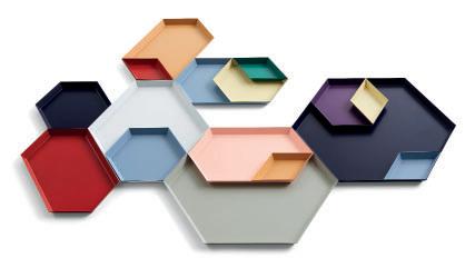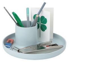 e O-Tidy, 39 chf r Coffee Mug, 29 chf ⑤ S-Tidy, 39 chf y Trays, set de 3 plateaux, dès 125 chf u Cone Clock, 415 chf i O-Tidy, 39 chf