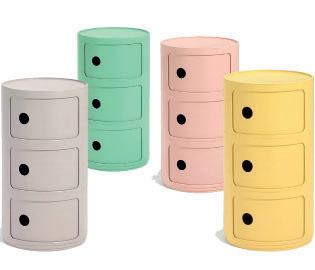 ① Captain Flint, Flos, 1'763 chf ② Table Brut, 95 * 260 cm, 2'515 chf e Sequoia, 404 chf r 360° Containers AC270, 949 chf.