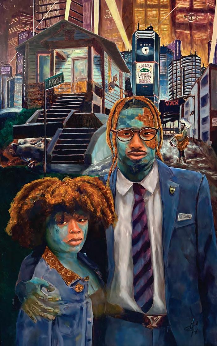 Weary calls this 2024 work a modernized spin on Grant Wood’s 1930 painting “American Gothic.” And this Arts Council of Greater Baton Rouge artist-in-residence’s thought-provoking symbolism takes portraiture to new heights.