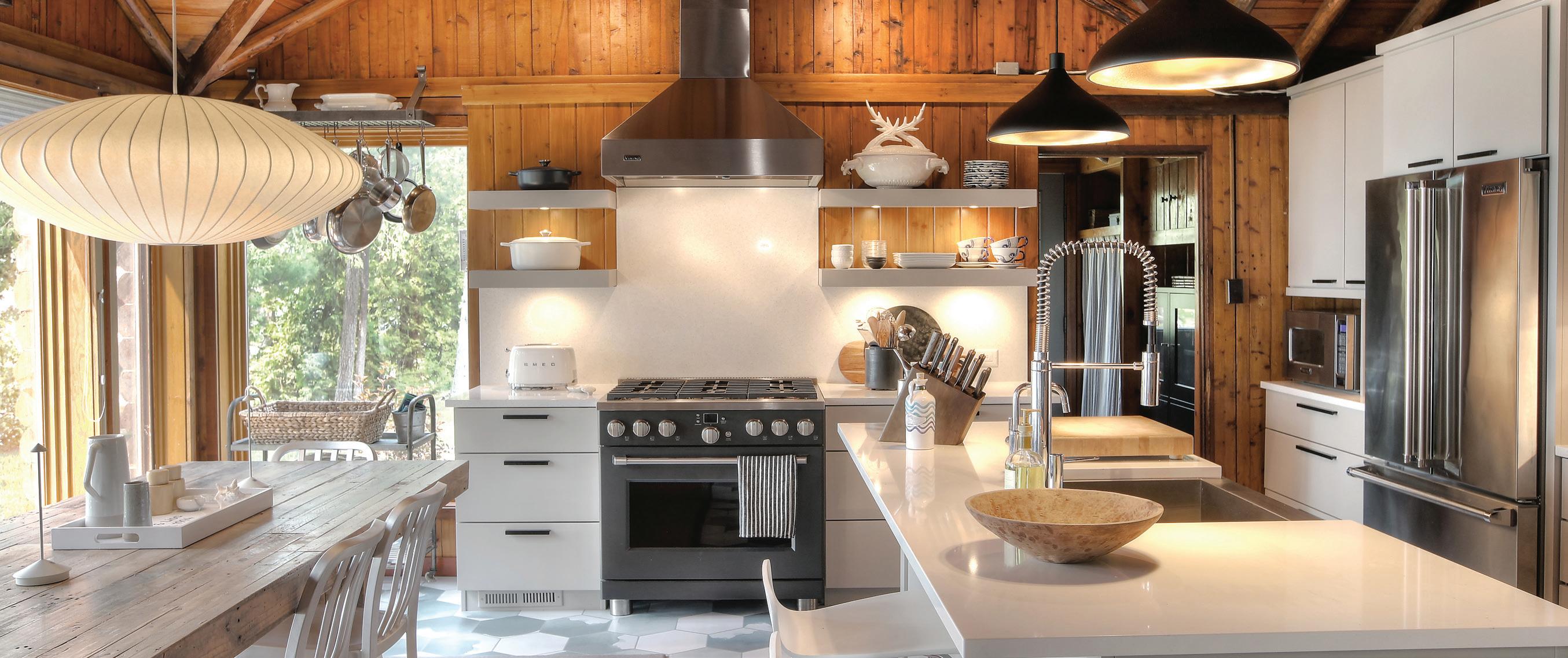 GREGG PROUDLY SHARES that Connie had a large hand in the design process. As someone who had worked on other homes before, she was no stranger to the process and had a good idea of what she wanted in her new up-north home. “I believe a home should be personal,” she says. “We incorporated the things we loved and didn’t want everything new.” Those small touches are so seamlessly intertwined with the rest of the house that it’s almost impossible to point them out, but one stands out in the best way: the kitchen table. “We had it before we moved, and we wanted it in this house,” Gregg shares. “The kitchen, living room, and breakfast nook were all built around the table.”