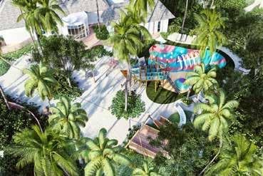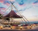 colour palette and decorated wall mural, showcasing shades of blue to resemble the sea and pale, creamy yellows reminiscent of sand and sunshine, serving a touch of paradise. The villa boasts a 50-inch flat-screen TV, Bluetooth speakers, an indooroutdoor bathroom complete with a separate tub and invigorating rain shower, a Nespresso coffee machine, toiletries from Malin + Goetz. The collection of body care products includes a refreshing body wash, invigorating peppermint shampoo, nourishing cilantro hair conditioner, and hydrating vitamin B5 body moisturizer.