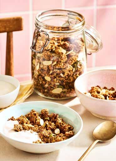 4 Measure 50g granola per serving and enjoy with 100g soya yogurt.