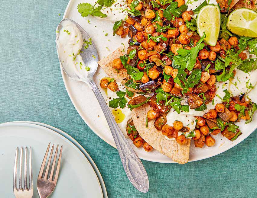 Chipotle chickpeas with aubergine & pittas
