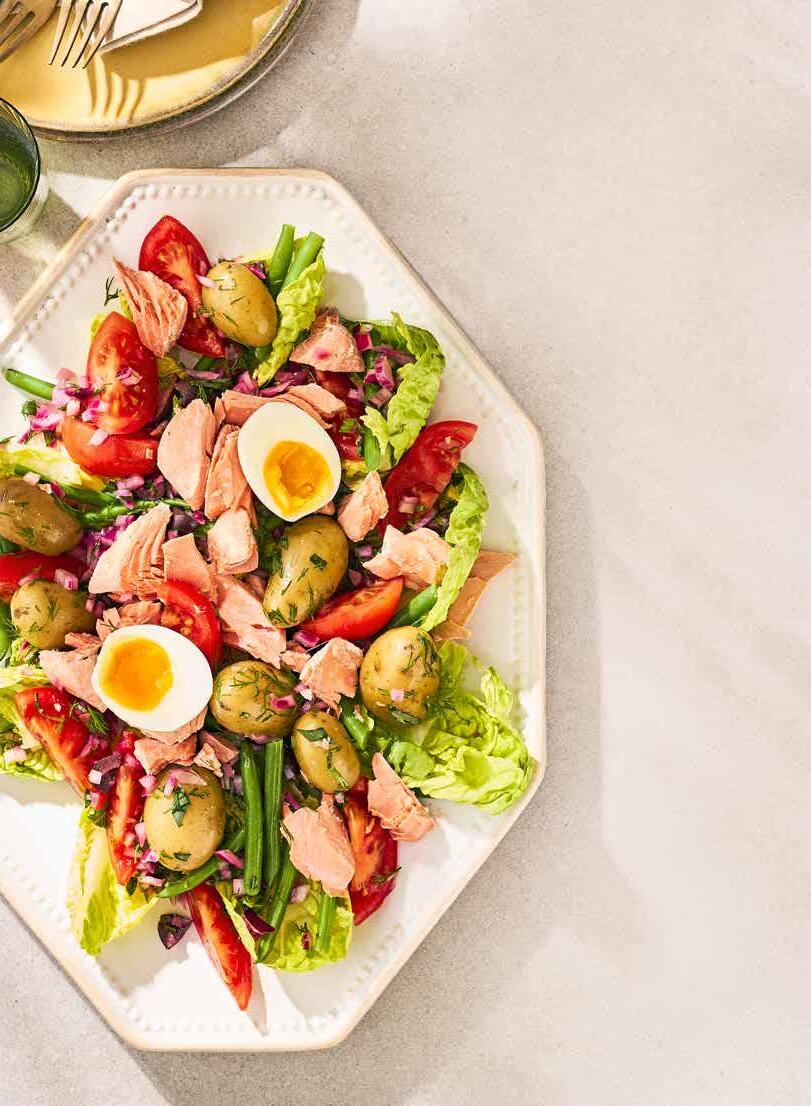 “This Fresh salmon niçoise salad packs in 3 of 5-a-day and Vitamin C, making it a nourishing 15-minute lunch for busy weekdays.”