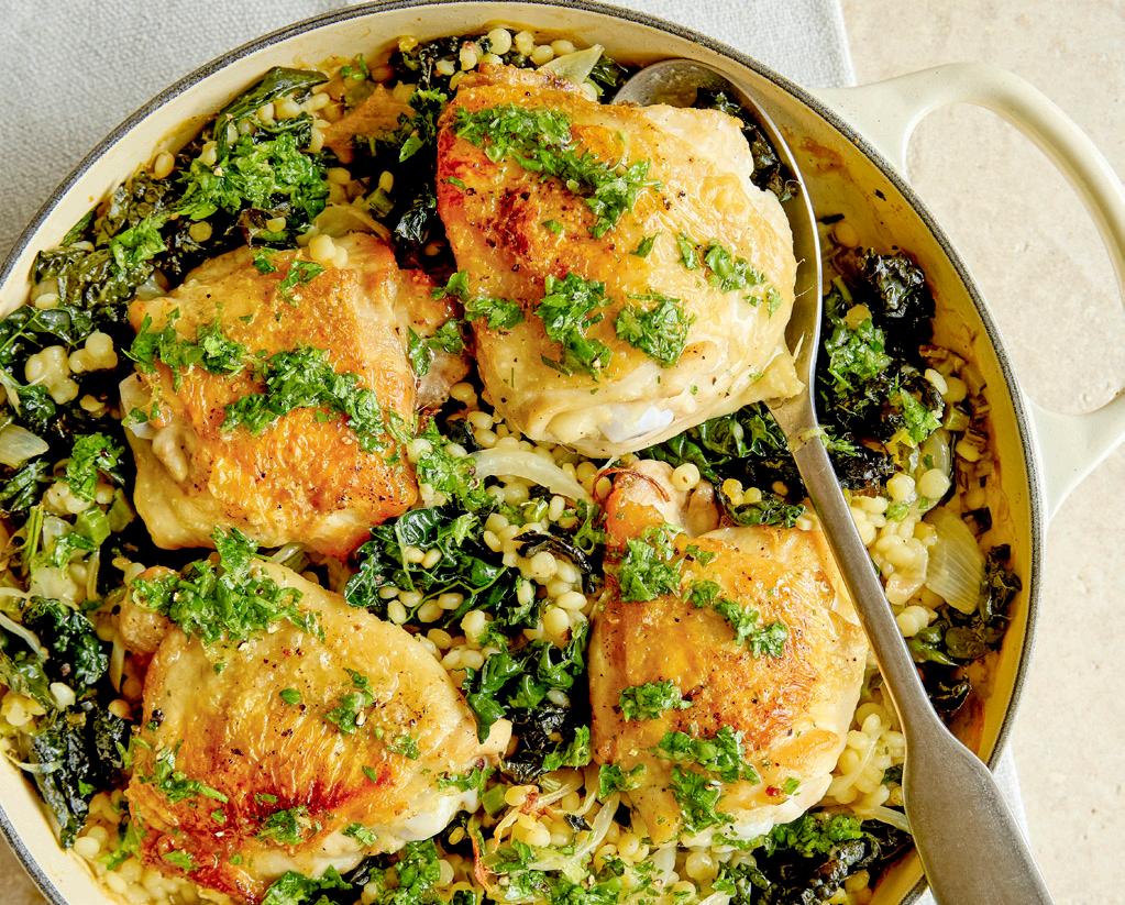 Weekend bakes (from p54) will whisk you back to childhood with familiar favourites such as our cover star, Giant fondant cake. Game lovers, take note – we’re putting pheasant in the spotlight, with recipes to make the most of this bird. Our new “Eat well for...” series (p78) focuses on gutfriendly foods, while we explore the nutritional benefits of fibre-rich apples in both sweet and savoury preparations (p82).