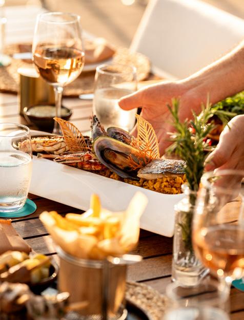 of exotic fresh fruit, bread varieties, and traditional specialities including a Spanish tortilla and Pan con tomate (bread with tomatoes). Once you fill your plate, head to the serene terrace and enjoy the sound of the waves. For lunch, the sun shines bright on Sea Grill, making it a popular afternoon spot welcoming non-hotel guests too. The menu features must-try items including one of our favourites, Prawns Pil Pil, in a moreish tomato garlic marinade. The Sardine espeto (skewered sardines) is
