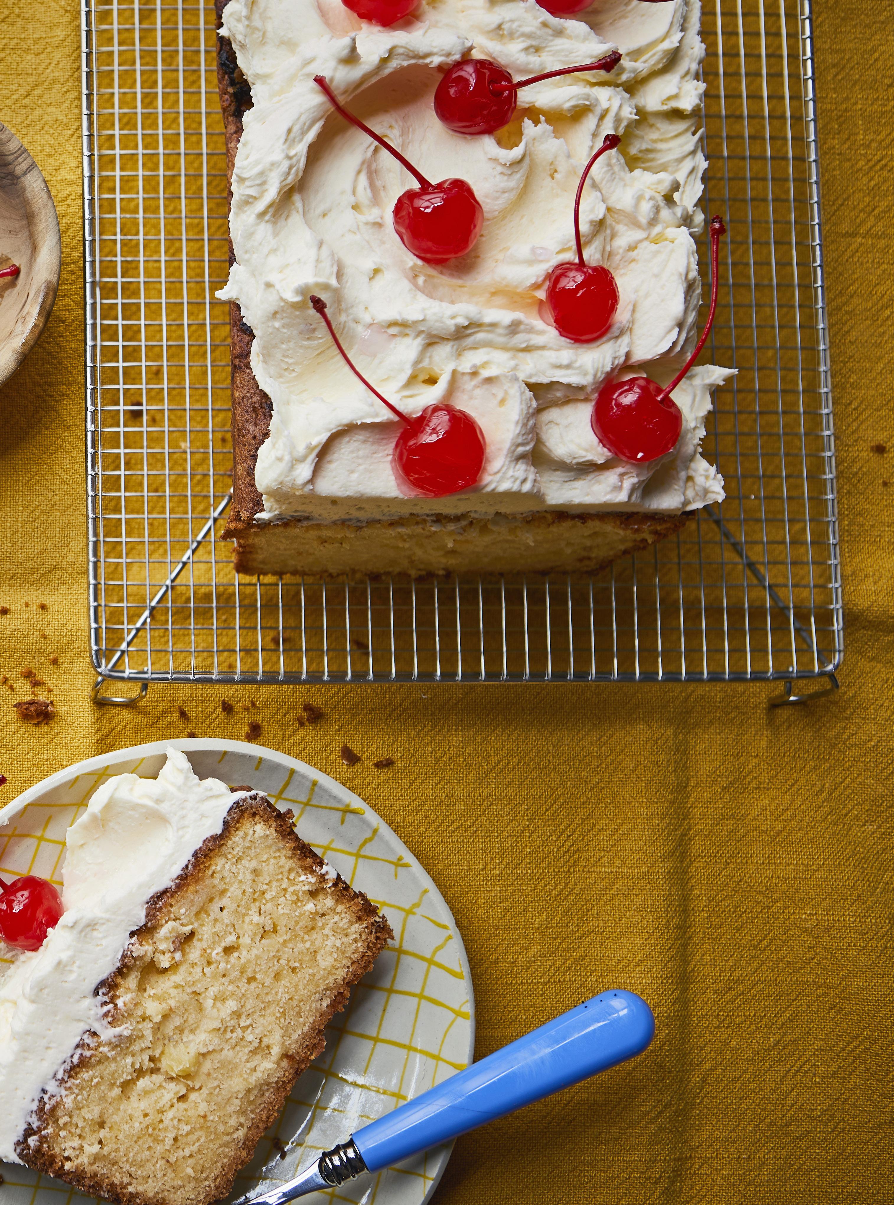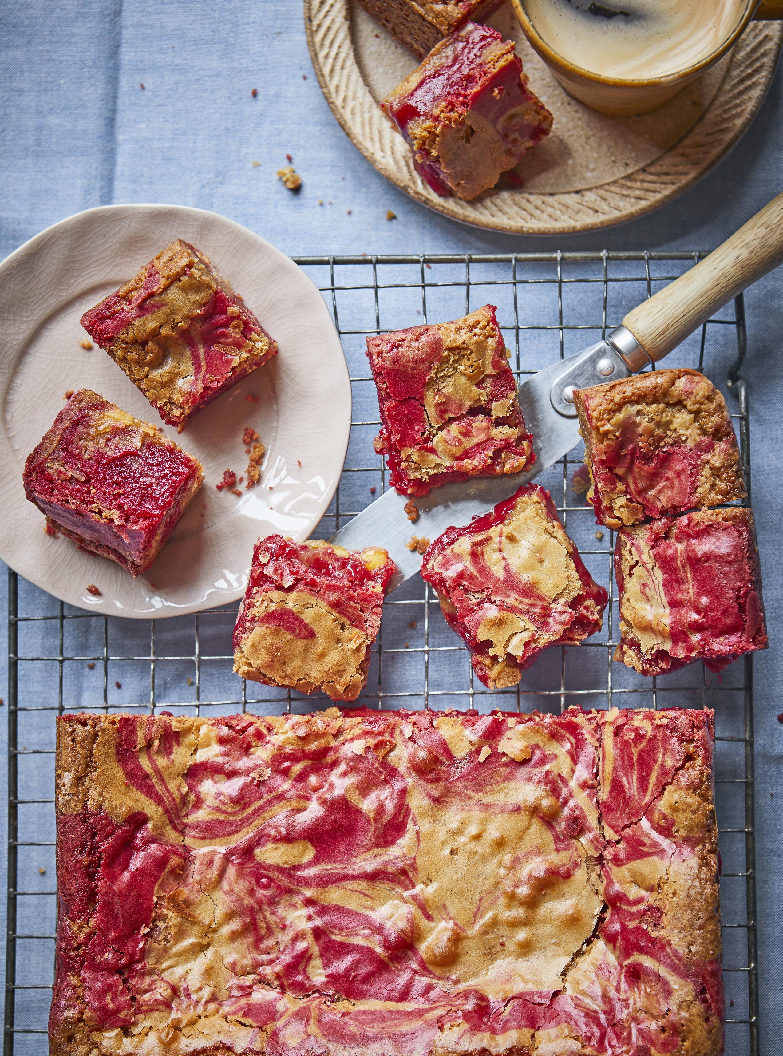 Prepare this cake that combines rhubarb crumble and custard
