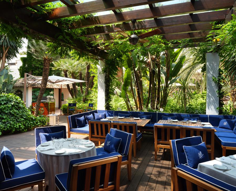and crisp whites make up the space. The marble bathroom, a sanctuary in itself, boasts twin vanities and a rainfall shower. As day fades to night, sink into sumptuous bedding, while stateof-the-art amenities like the 55-inch flat-screen and Illy coffee machine stand ready to cater to your every whim. Here, in this thoughtfully crafted space for up to three, every detail from the hand-picked Natura Bissé toiletries to the traditional ceramic touches tells a story of Andalusian charm. Other accommodation options include a Garden Suite with a kitchen, Royal and Imperial Suites with sea views, and three private villas, complete with a pool and butler services, including catering and barbecue (on request).