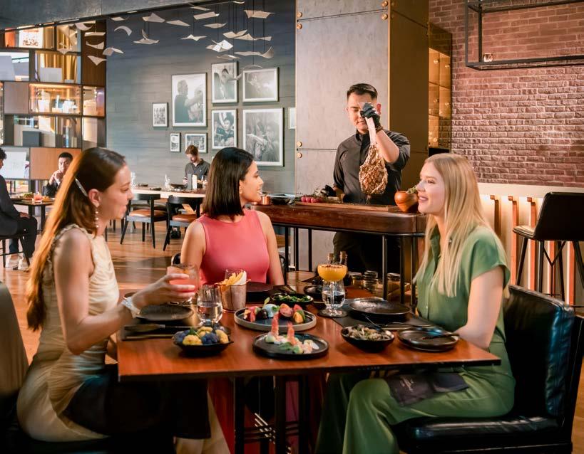and standalone restaurants featuring cuisines from contemporary Japanese and Emirati to Grecian, Venetian, Mediterranean, pan-Asian, steakhouse, and Indian fine dining.