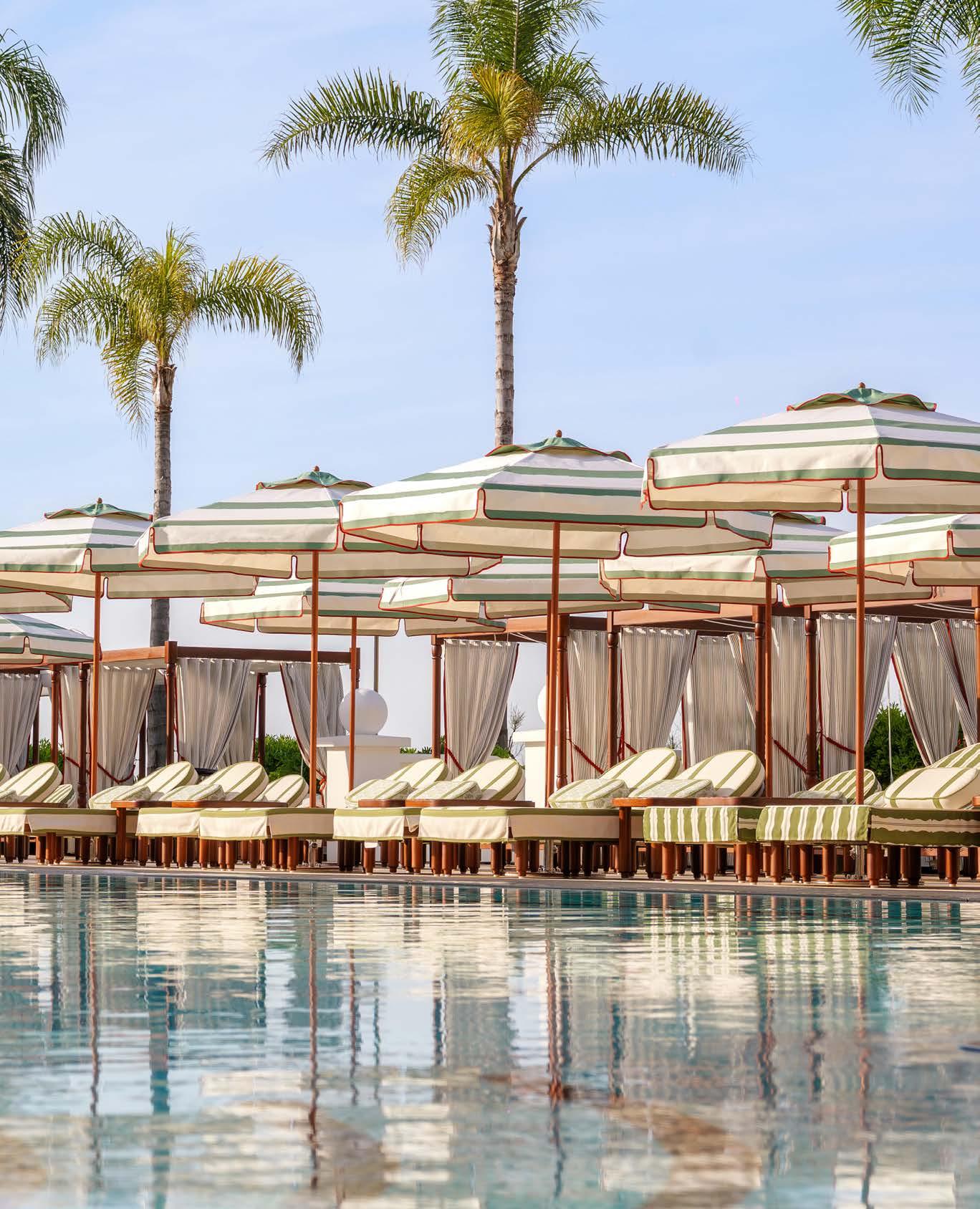 Nestled in a quiet cove along Monaco’s coastline, the Monte-Carlo Beach Club is a sun-drenched sanctuary. Striped cabanas line the private beach, while an Olympic-size pool stretches invitingly for leisurely dips. Time seems to slow down here, each hour drifting by in unhurried luxury as you cool off in the pool, sunbathe, watch jellyfish glide along the shore, or swim laps in the turquoise embrace of the enclosed sea. For a touch of retail therapy, nearby boutiques tempt with designer finds.