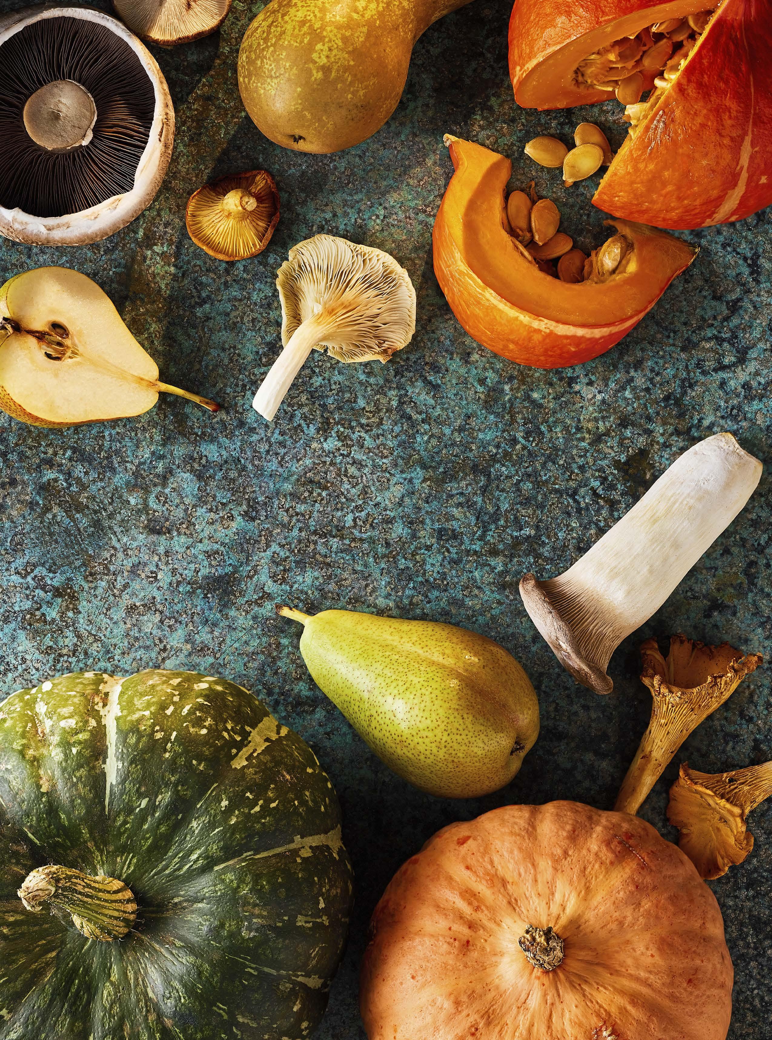 Cook with mushrooms, pumpkins and pears