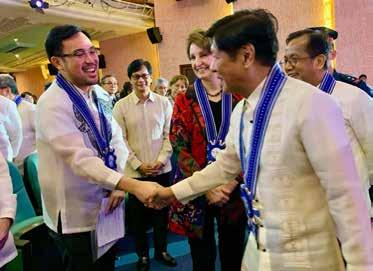 With veteran Senator Loren Legarda at the Anakbanwa Arts Exhibition held in MacArthur House, Dagupan City. Anakbanwa is an unprecedented arts residency program initiated by De Venecia in the fourth district of Pangasinan. Another landmark initiative of de Venecia is the Galila Arts Festival, a multiarts event. Earlier, he spearheaded the restoration and the transformation into tourist destination and heritage site of the MacArthur House, the Home Economics building of West Central Elementary School which served as Gen. Douglas MacArthur’s headquarters. Addressing participants from around the world at the roundtable discussion during the 3rd World Conference on Creative Economy in Bali, Indonesia. Greeting President Ferdinand Marcos Jr. during the launching of the Philippines’ National Innovation Agenda and Strategy Document (NIASD) in September 27, 2023. The NIASD contains the country’s vision and long-term goals for innovation.Revenge travel was all the rage at the recently concluded Winter Escapade 8, the annual balikbayan travel initiative of the Department of Tourism (DOT) and Department of Foreign of Foreign Affairs (DFA) which made its triumphant return after a three-year hiatus due to the pandemic.