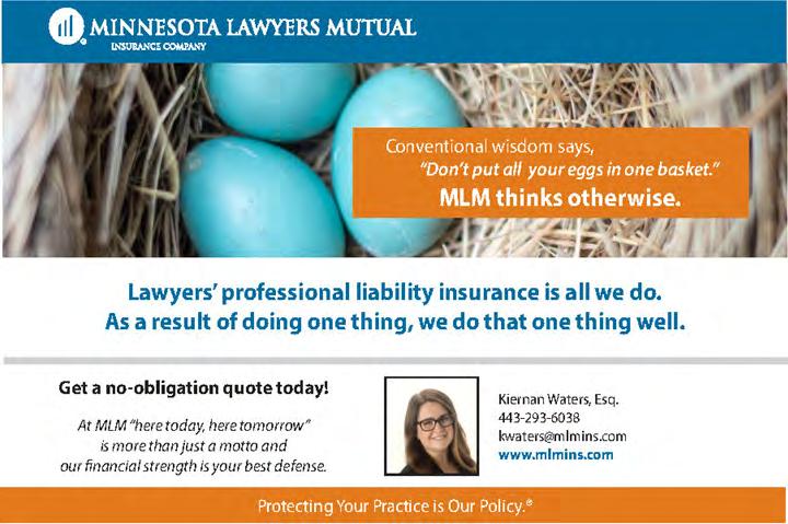 Special Thanks to the Annual Sponsors of the Baltimore County Bar Association Title Sponsor - Law Firm Albers & Associates Title Sponsor - Corporate Growth Solutions Team Signature Sponsors - Corporate Minnesota Lawyers Mutual Multi-Specialty HealthCare USI Vallit Advisors Partner Sponsor - Law Firm Frost Tax Law Rice, Murtha & Psoras Partner Sponsor - Corporate Adobe Chart Squad Clio CRC Salomon Optimize My Firm Pohlman USA 2022 AWARDS FOR PUBLICATION EXCELLENCE WINNER Adv cate The VOLUME XXXII, NO. 10 Newsletter of the Baltimore County Bar Association May 2023