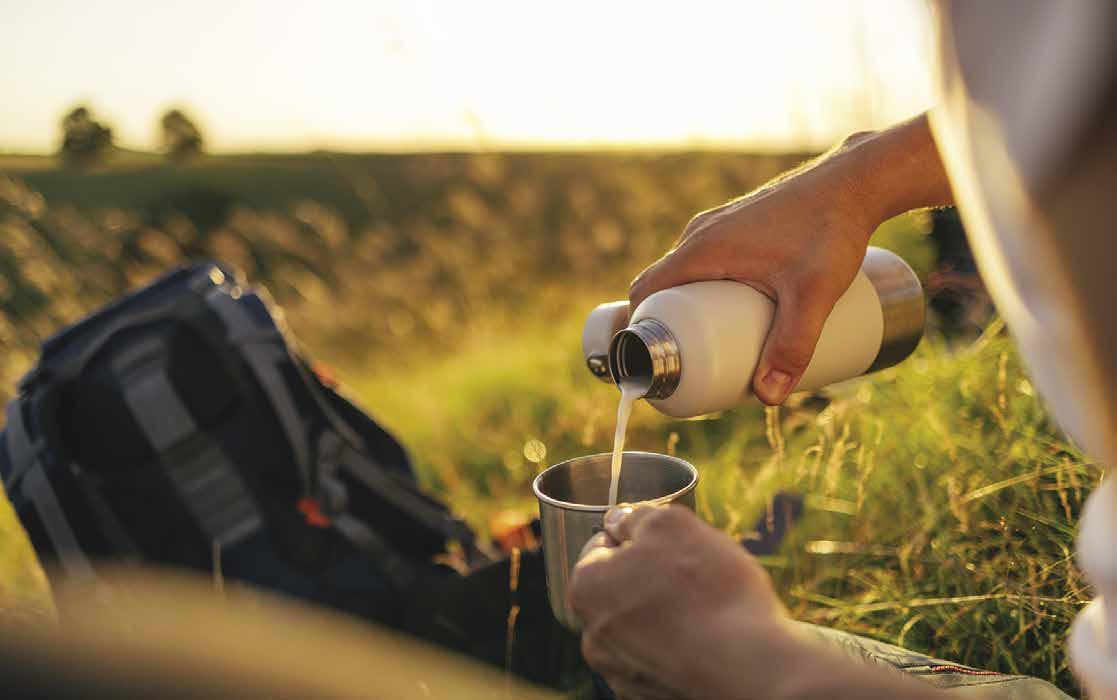 BACKCOUNTRY CHARCUTERIE. There’s no getting around eating dehydrated meals, but you can have fun with other meals. I’m a huge fan of bringing Babybel cheeses (individually wax-wrapped), a cured salami or pep peroni roll, smoked salmon, crackers, and Trader Joe’s green olive packs. Together, they make a perfect Europeaninspired charcuterie lunch or brunch. A few pieces of chocolate or a single can of wine can also elevate a meal on an especially hard day.