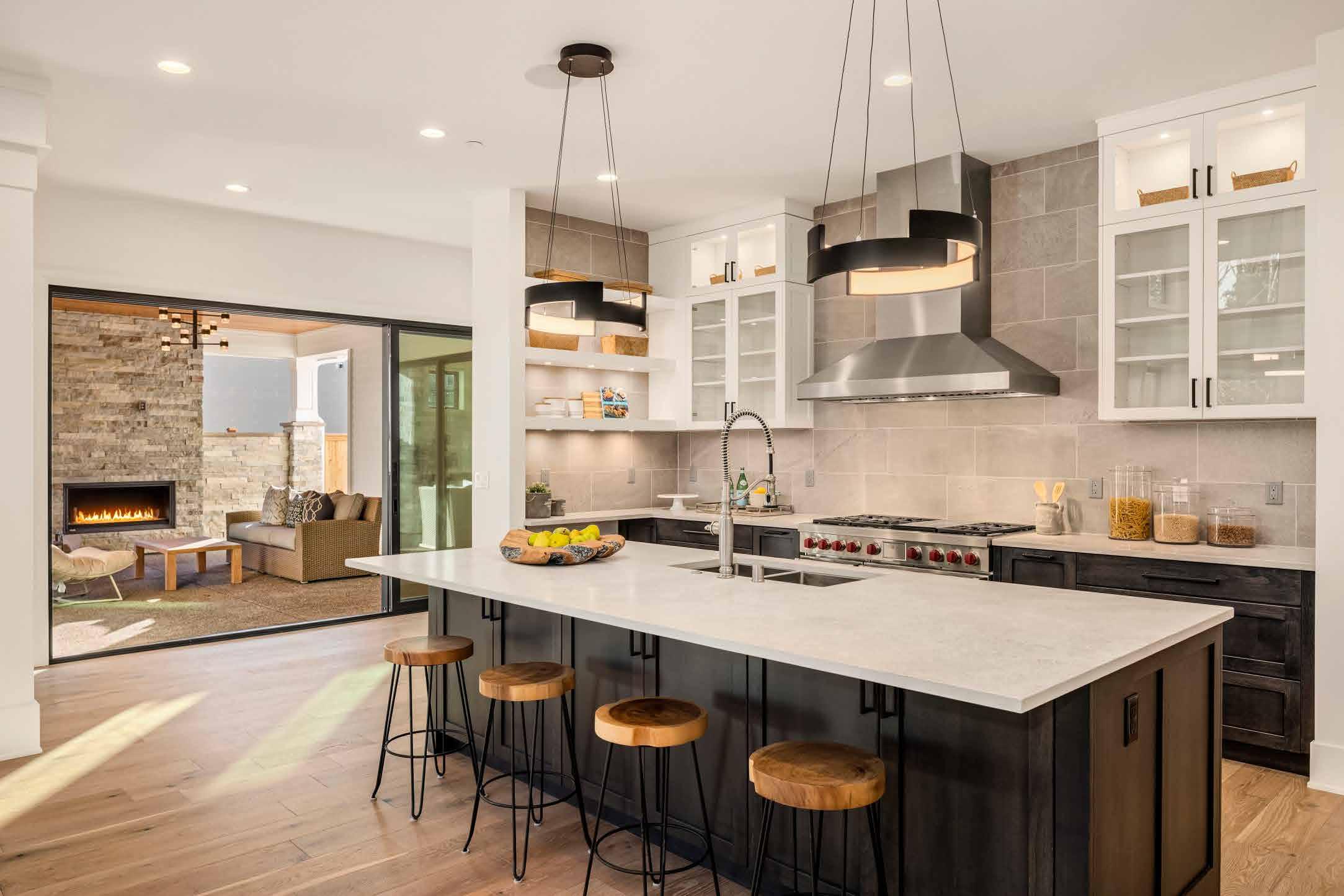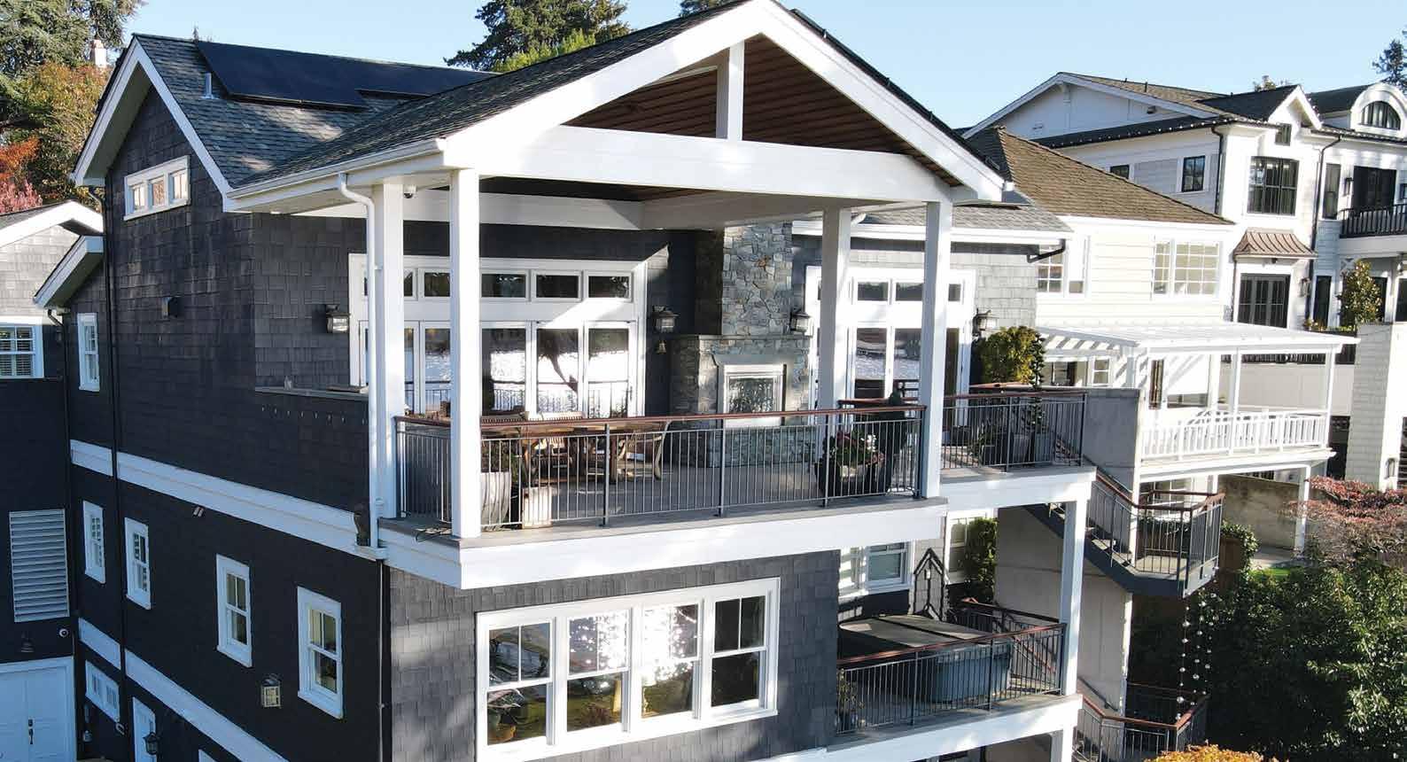 • Extra large living spaces, oor-to-ceiling windows, electric window solar shades, expansive decks and patios