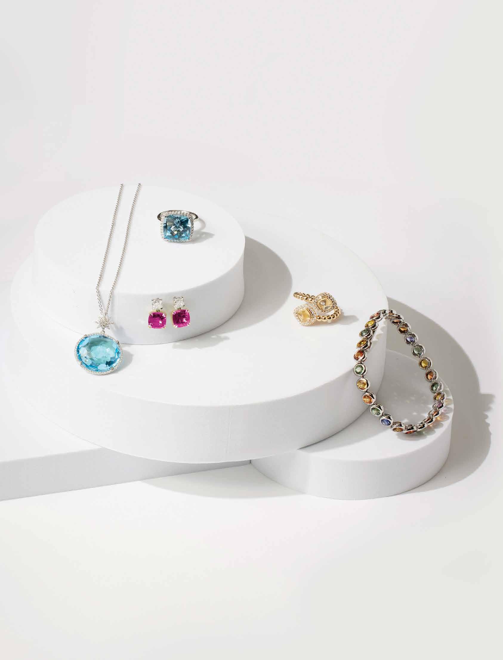 IT IS WELL-KNOWN CERTAIN COLORS HAVE THE POWER TO ENHANCE OUR MOODS. What better way to bring a touch of vibrancy and juiciness to your jewelry pieces than a colorful gemstone. Relaxed hints of blue, or aesthetic yellow, go nicely with summer attire. A verdant green emerald will add a hint of glamour. If you can’t decide, wear all of the colors of the rainbow in this beautiful bracelet.