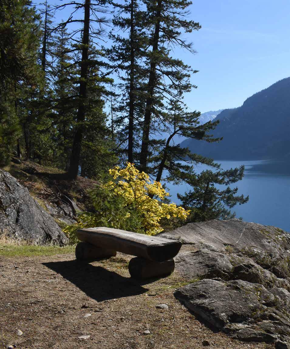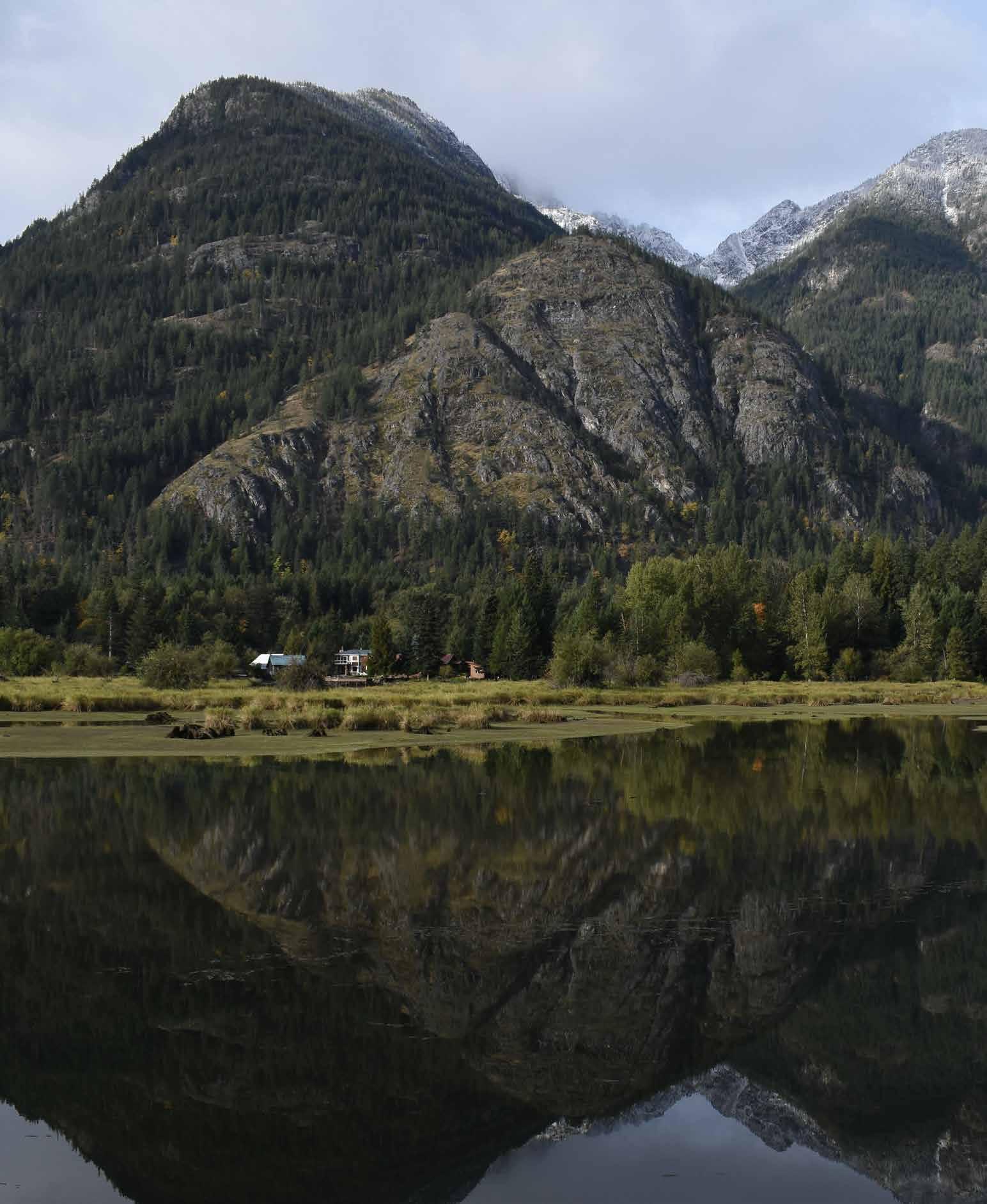 For such a small place, Stehekin has a lot of lodging options, ranging from riverside camping to rustic cabins deep in the woods. Many places come with a vehicle for guest use, which is essential to have if you’re not on a bike or a serious walker. The Stehekin Valley Ranch (stehekinvalleyranch. com), the valley’s most extensive resort, has a shuttle that heads up and down the main road regularly, stopping at popular spots along the way. (The National Park Service also has a bus that goes as far as the road goes and can be waved down at any point along the way.)