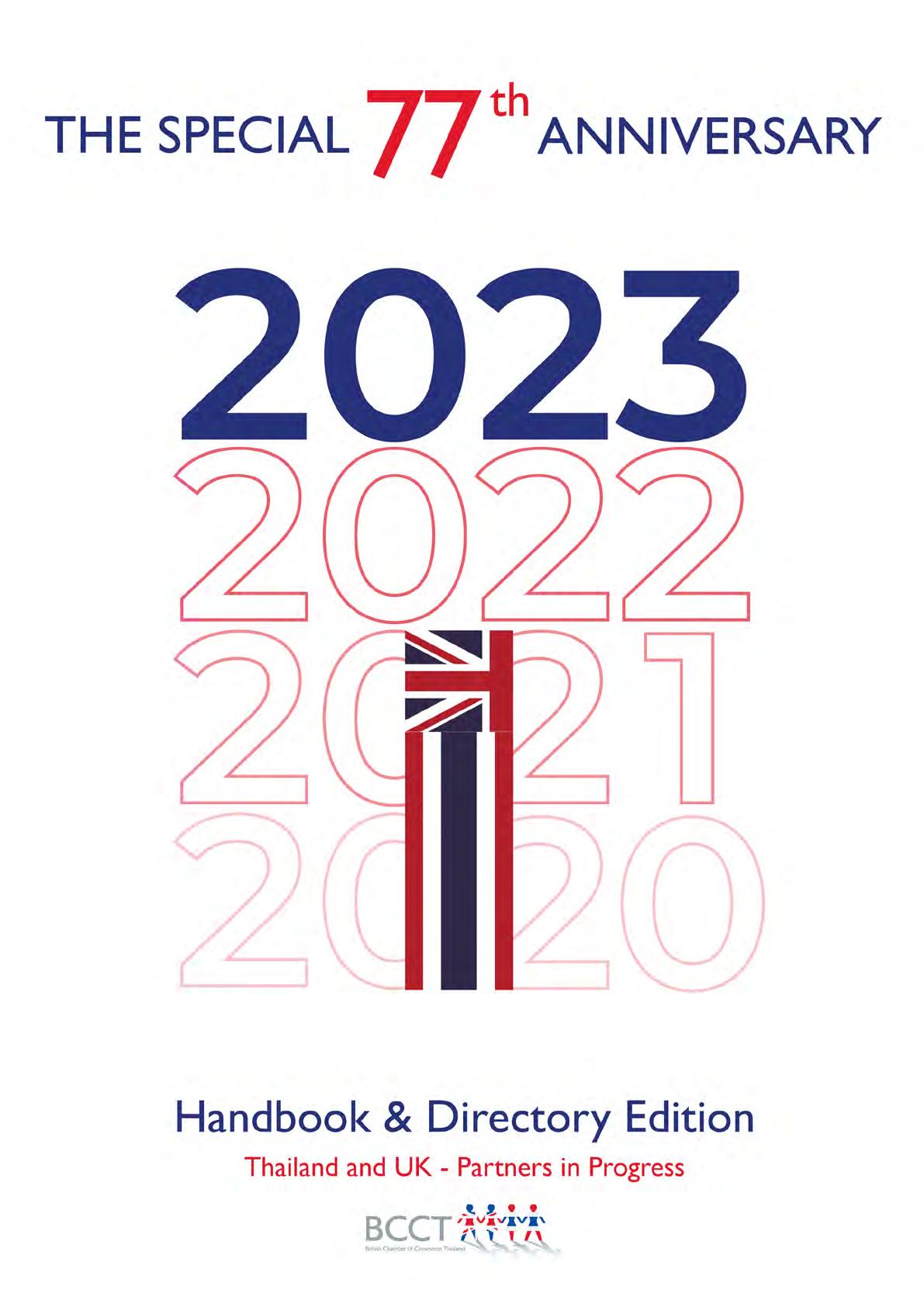 Iwish to extend my congratulations to the British Chamber of Commerce Thailand (BCCT) for another successful year, and on the publication of its 2023 Member’s Handbook and Directory entitled “United Kingdoms — Partners in Progress”.