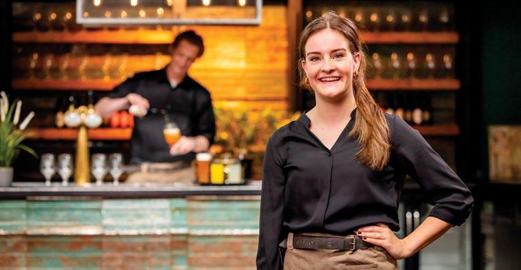 IEDEREEN IS WELKOM Achter de bar, in de bediening en de keuken, maar ook als parkeerwacht: ,,Wij zoeken collega’s voor de verschillende afdelingen. We kijken welke taken het beste bij je passen, maar leiden je zoveel mogelijk allround op zodat je exibel ingezet kunt worden.” Je komt te werken op een bijzondere locatie. ,,Gasten kunnen er voor de musical een drankje doen en heb-