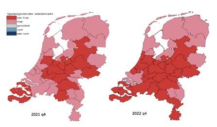 REGIO Ondanks een lichte afname van de spanning in het laatste kwartaal bleef de arbeidsmarkt eind 2022 zeer krap. In vergelijking met eind 2021 nam de arbeidsmarktspanning zelfs ink toe. Het spanningsniveau ging in veel regio’s en beroepsgroepen in een jaar tijd van ‘krap’ naar ‘zeer krap’.