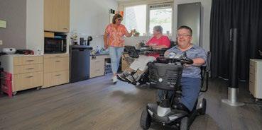 zelf zijn en in samenspraak mijn eigen dagindeling bepalen. Ik ben een vroege vogel en sta om 6.00 uur op. ‘s Avonds kan ik naar een verjaardag of naar het theater, als mijn dochter een voorstelling geeft. Ik hoef niet in de regiotaxi op mijn klok te kijken. Als ik thuis kom, kan ik de zorg oproepen en zijn ze er in een kwartier. Je kan een huisdier hebben; mijn hulphond kan met respect zijn werk doen. Dat alles is voor mensen met een fysieke beperking bijzonder.”