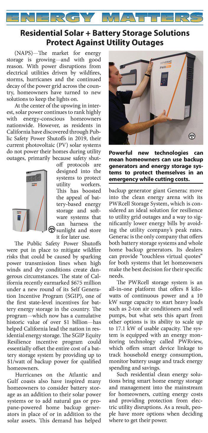 THE GENERAC PWRcell solar plus battery storage system. Save money, reduce reliance on grid, prepare for outages & power your home. Full installation services. $0 Down Financing Option. Request free, no obligation quote. Call 1-877-539-0299.