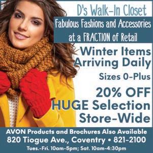 e Reminder January 25, 2023........Page SAY YOU SAW IT IN THE REMINDER 3 Who will inherit your assets? Who would handle your nancial a airs and medical decisions if you were rendered unable to make them for yourself? Leave Nothing to Chance • Wills • Trusts • Estates • Divorce • Custody • Visitation • Personal Injury • Landlord/Tenant • Bankruptcy with expert estate planning you can trust Call for a FREE Review Law O ce of Steven J. Hart 328 Cowesett Ave., Suite 3, West Warwick, RI Call 828-9030 www.hartlawri.com First Consultation at No Charge! Become a Published Author with Dorrance. We want to read your book! Trusted by authors for nearly 100 years, Dorrance has made countless authors’ dreams come true. Complete Book Publishing Services FIVE EASY STEPS TO PUBLICATION: 1. Consultation 2. Book Production 3. Promotion 4. Distribution 5. Merchandising and Fulfillment Our staff is made up of writers, just like you. We are dedicated to making publishing dreams come true. Call now to receive your FREE Author’s Guide 888-459-3344 or www.dorranceinfo.com/beacomm Helping Local Businesses Thrive & S vive SINCE 1954 Call us at 821-2216 to adv tise y r business f y r c tinued l alty Thank Y Dial Oil Service You’ll Be Glad, You Called “Dial” Spicy Boom Boom Salmon with Roasted Pepper Relish $1999lb. Grab 'N Go Three Cheese Baked Ziti with Meat $599ea. Jumbo Steak and Cheese Bombs $699ea. Award Winning Pork Schnitzel with Noodles $699lb. Superfoods Slaw with Shrimp $699lb. BBQ Grilled Kielbasa $699lb. 11.4 - 12.6 oz. Cap 'N Crunch Cereal 2/$6 13 oz. Quaker Life Cereal 2/$6 Pearl Milling Company Pancake Mix or 24 oz. Syrup 3/$8 28-29 oz. Hunt's Tomatoes 2/$4 16 oz. Chi Chi's Salsa 2/$5 Rice A Roni or Pasta Roni 4/$5 SAVE $1.00!! 16 oz. Newman's Salad Dressing $399 16 oz. Hidden Valley Ranch Dressing $399 SAVE $1.00!! 46 oz. V-8 Vegetable Juice 2/$7 Chef Boyardee Canned or Microwave Pasta 2/$3 Kraft, 5.5 - 7.25 oz., Excludes Gluten Free Mac & Cheese Dinners 3/$5 Virginia Ham $4.99lb. All Varieties Hot Pockets...................................2/$6 SAVE $1.00! Tropicana, 89 oz. Orange Juice $699 Hood, 32 oz. Country Creamer 2/$3 Pillsbury Crescent or Cinnamon Rolls 2/$6 Hood, 16 oz. Cottage Cheese 2/$6 Daisy, 16 oz. Sour Cream 2/$5 Bay, 6 count English Muffins 2/$7 Just Like Memere's! French Meat Pies $1099ea. Muffin of the Week: 4 pack Cranberry Orange $599 Tom's Own, Market Made Croutons $2.99bag 6-8 oz. Cabot Bar Cheese $2.99 24 Pack Poland Spring Water 2/$9 Fresh Baked, 27 oz. Apple Crumb Pie.......$699 McCain, All Varieties Fries or Rings 2/$6 Florida's Natural, 52 oz. Orange Juice 2/$7 All Varieties Oscar Mayer Bacon $699lb. Lean and Tender, 2 Pack Pork Tenderloins $399lb. USDA Choice, Shoulder London Broil Steak $499lb. Hummel Bros. Smoked Shoulder Halves $299lb. Great for Soup!! Meaty Beef Shanks $399lb. All Varieties, 8 oz. Hatfield Ham Steaks 2/$5 USDA Choice Spoon Roast $599lb. USDA Choice Flat Iron Steak $799lb. Thin Sliced Pork Cutlets $399lb. USDA Choice, Boneless Short Ribs $699lb. Sandwich of the Week: California Club....................$699ea. TOM’S MARKET Fresh . Local . Exceptional . COVENTRY 821 Tiogue Avenue, Coventry, RI 02816 Mon.-Sat. 8am-7pm, Sun. 8am-6pm 401-826-0050 Prices in effect Jan. 25thJan. 31st Due to manufacturer’s supply issues, some items may be in limited supply. Sorry, No Rain Checks *Not Responsible for Typographic Errors. Some items may not be available in all locations. 18-20 Count Stash Teas $399 17.5 oz. De Cecco Gnocchi $289 Mrs. Ressler's Rare & Juicy Roast Beef $1099lb. Tom's Own Roasted Turkey Breast $1099lb. Boar's Head Honey Maple Ham $899lb. Kretchmar Bacon Topped Turkey $1099lb. Boar's Head Buffalo Chicken Breast $1099lb. Citterio, Hot or Sweet Capicola $995lb. Fancy, Red Le Rouge Peppers $179lb. Extra Large Lemons or Limes 99¢ea. “Vidalia Style” Sweet Onions $1.49lb. Healthy and Delicious Brussels Sprouts..... $249lb. Imported from Chile Peaches, Plums or Nectarines $299lb. SAVE $2.00! Sweet, Imported Blueberries or Raspberries $299ea. WOW! Fresh Cut Cantaloupe or Pineapple $399lb. Fresh Cut, California Broccoli Crowns $249lb. Hampton Farms, 16 oz. Bag Peanuts 2/$5 La Mexicana, Hot or Mild Salsa $399ea. Fresh, Crisp Iceberg Lettuce $1.99ea. Extra Large Beefsteak Tomatoes $2.49lb. 3lb. Bag Macintosh or Cortland Apples or Navel Oranges ..$299 For Your Chowder or Stuffies! Fresh Quahogs $179lb. Sweet & Succulent Bay Scallops $699lb. Tom's Famous Stuffed Scrod $1099lb. Super Colossal, 8-12 ct. Ez-Peel Shrimp $9.95lb. Ground Chuck $3.99lb. Tom's Own, 24 oz. NE Clam Chowder $6.99 Clam Cakes 6/$4.99 WOW! “BUY MORE, PAY LESS!” WOW! USDA Choice, NY Sirloin Steak $6.99lb. Crockpot® Time! USDA Choice Beef for Stew ....$499lb. WOW! It Sells Out Every Time! Liver and Onions $5.99lb. 23-24 oz. Prego Pasta Sauce 2/$5 BelGioioso, 8 oz. Fresh Mozzarella $399 Cheese Wedges $4.99 Boar's Head Vermont Cheddar Cheese $6.99lb. Delicious Sole Francaise..$1299lb. WOW! Cabot, 7 oz. Whipped Cream 2/$5 All Varieties Lean Cuisine 2/$7 EVERYDAY LOW PRICE! Seven Farms Organic, 7.4 oz. Waffles $229 SAVE $1.00 WOW! WOW! WOW! PRICE BREAK!! WOW!