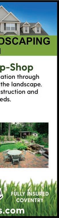 WANTED ANY JUNK VEHICLE Highest Prices Paid! Paying $100-$500 cash Call 474-5723 anytime Krafty Sisters Country Gifts & Crafts OVER 100 CRAFTERS www.kraftysisters.com 15 Sandy Bottom Rd. Cov. 401-827-0188 www.thebathwitch.com Join the Soap of the Month Club 1044 Main Street, Coventry 401-954-1028 Bar of soap delivered to your door each month Call Today To Reserve Your Space 821-2216 lindan@rhodybeat.com • melissam@rhodybeat.com 440 Providence St., W. Warwick 401-828-2830 copycatsri.com Copier Sales/Service • Printing • Custom Apparal • Signs D’s Walk-In Closet Fabulous Fashions and Accessories at a FRACTION of Retail 20% OFF A Huge Selection Store Wide Sizes 0-Plus Summer Fashions Now Arriving Daily! 820 Tiogue Ave., Coventry • 821-2100 Tues.-Fri. 10am-5pm; Sat. 10am-4:30pm TIRES 199 Providence St. West Warwick, RI 401-822-0014 BRAKE LABOR $85 UP PER AXLE. Mon-Fri 9-5 Saturday 9-2 Closed Sunday Behind Every Small Business is a Family! - ALLMINORAUTOREPAIRS - WEBUYTIRES $15 UP NEW & USED LABOR ONLY. PER AXLE. RIDER TIRE & CUSTOMS 1168 Warwick Ave. Warwick, RI 401-463-7100 Mon.-Thur. 10 a.m. to 6 p.m. Fri. & Sat. 10 a.m. to 4 p.m. John L. Spaziano John W. Spaziano REGISTERED OPTICIANS IF YOU WEAR GLASSES READ TH IS T WO PA IR E YEGLASSES For$9995 FT-28 Bifocals $40 Additional + OR - 4.00 CR39 LENSES coupon must accompany order S ING LE VISIONPRESCRIPTION L EN SES & FRAME • Choosefromaspeciallyselected groupoffashionframes • Extrachargeforhighpowers SCAN NOW FOR AN INSTANT QUOTE SOFT WASHING SERVICES HOUSE WASH - ROOF WASH - DECK WASH PATIO WASH - FENCE WASH FREE ESTIMATES 401-595-0726 www.PowerWashJM.com Licensed&Insured Gi CertificatesAvailable ADDITIONAL CLEANING SERVICES •SolarPanels• •Gutters• Father’s Day 10% OFF POOL APRONS SHOP LOCAL SAVE LOCAL support businesses that keep your community thriving Ed’s Painting & Remodeling RESIDENTIAL & COMMERCIAL 30 YEARS EXPERIENCE Interior/Exterior Painting Handyman & Remodeling Windows • Doors Decks • Hardwoods Ceramic Tiles Vinyl Siding & Much More Call Eddie Cell: 401-332-8339 Home: 401-332-8395 Lic. # 11447 Insured Accepting PayPal Mastercard & Vis 40+ Years in Business • Fair Prices Kitchens • Baths • Additions Basements • Interior Staircases Decks • Sheds All Work Guaranteed Fully Insured | Reg. #7545 401-996-4317 We take pride in what we do! MICHAEL & JOAN CUSTOM INTERIORS Junk Removal • Construction Demolition RESIDENTIAL/COMMERCIAL URBAN DISPOSAL 401-298-3588 Call for Dumpster Sizing and Availability Denise’s Cleaning Service Specializing in RESIDENTIAL & COMME RC IAL CLEANING Providing a Professional & Personalized Cleaning Service WEEKLY | BI-WEEKLY | MONTHLY 401.428.8164 Free Quote OPEN TO THE PUBLIC! Starting May 31st Coventry - West Greenwich Elks The Wild West Greenwich Farmers’ Market Wednesday Nights 4-7pm (located in the back parking lot) 42 Nooseneck Hill Road, West Greenwich, RI AML Bookkeeping � Accounting Services ROOFING & CONSTRUCTION LLC FREE ESTIMATES LICENSED & I NSURED RI RE G 48467 BRIAN: 401-855-8900 14 WALNUT ST., WARW ICK RI 02888 Your favorite business doesn’t advertise in THE REMINDER? Well, why not bring them a copy of the paper and tell them how much you and your friends enjoy it? GOOD HEAVENS! SAY-U-SAURUS in The Reminder SAY-U SAURUS Tell Our Advertisers How You Found Them…