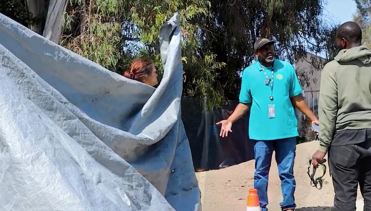 Participants in the 2025 count speak with a man experiencing homelessness. | Photo courtesy of Los Angeles County/Facebook