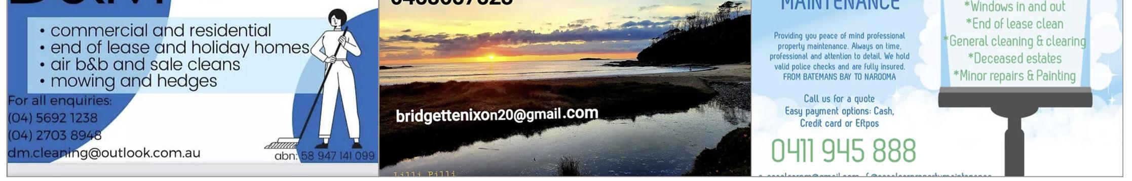 The Beagle Trades and Business Directory provides local Trades and Businesses a free lis ng in a hope that they might gain work from it, and con nue to provide employment and economic benefit to their families and our communi es. Adver sing is usually outside the affordability of many smaller businesses and sole traders. The Beagle supports locals. These lis ngs are FREE. If you are a local business and would like to be listed please contact us as we o en turn over these lis ngs to give everyone a fair go. Email beagleweeklynews@gmail.com Trades and Businesses can also list themselves on the Beagle Trades and Business Group in Facebook at h ps://www.facebook.com/groups/1303512213142880/