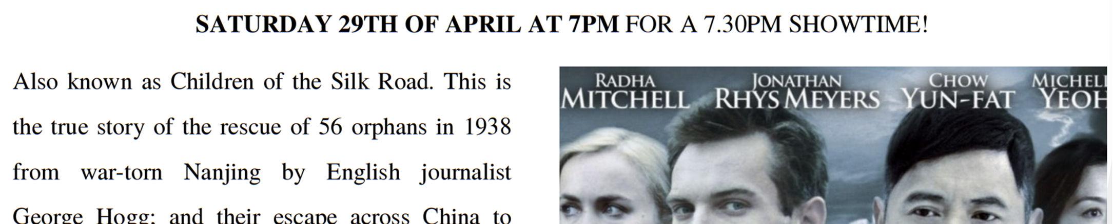 Prior to Anzac Day, on Saturday 22 April.