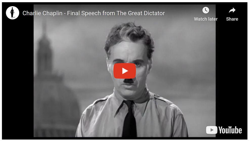 Now the wars are conspired behind closed doors, by the warmongers who fear out of ignorance, by those who conspire for territory or greed and by those who enjoy the financial windfall of war or at worst want to convert the non-believers to praise their god above any other. For those who have not heard the final speech of Charlie Chaplin in The Great Dictator released 31 October 1940: