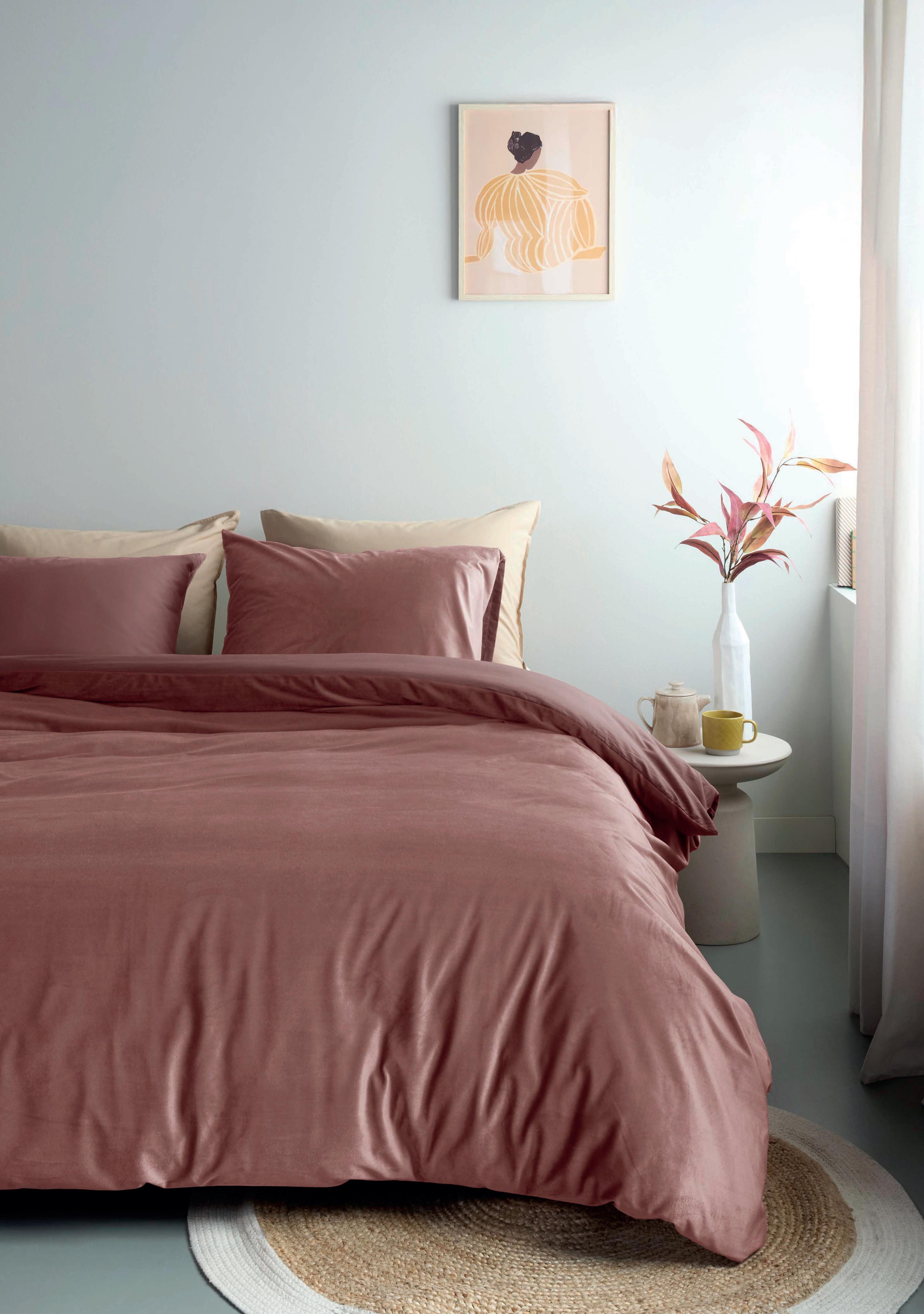 Wünschen Sie sich ein luxuriöses Gefühl in Ihrem Schlafzimmer? Dann entscheiden Sie sich für einen Bettbezug aus Samt. Der Stoff fühlt sich wunderbar weich an und glänzt wunderschön. Der schwere Stoff isoliert gut und sorgt für angenehm warme Nächte. Die Rückseite dieses Samtbettbezugs besteht aus 100 % Baumwolle.
