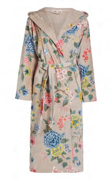 Les Fleurs bathrobe - Khaki 100% cotton terry velours, printed