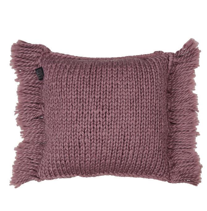 Front: 100% polyester, back: 100% cotton. Knitted with fringes. 45x45 cm.