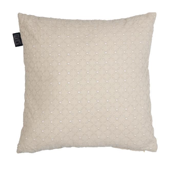 1. Chelsy Sand 100% cotton. Embroidery on front and uni dyed back. 40x40 cm.