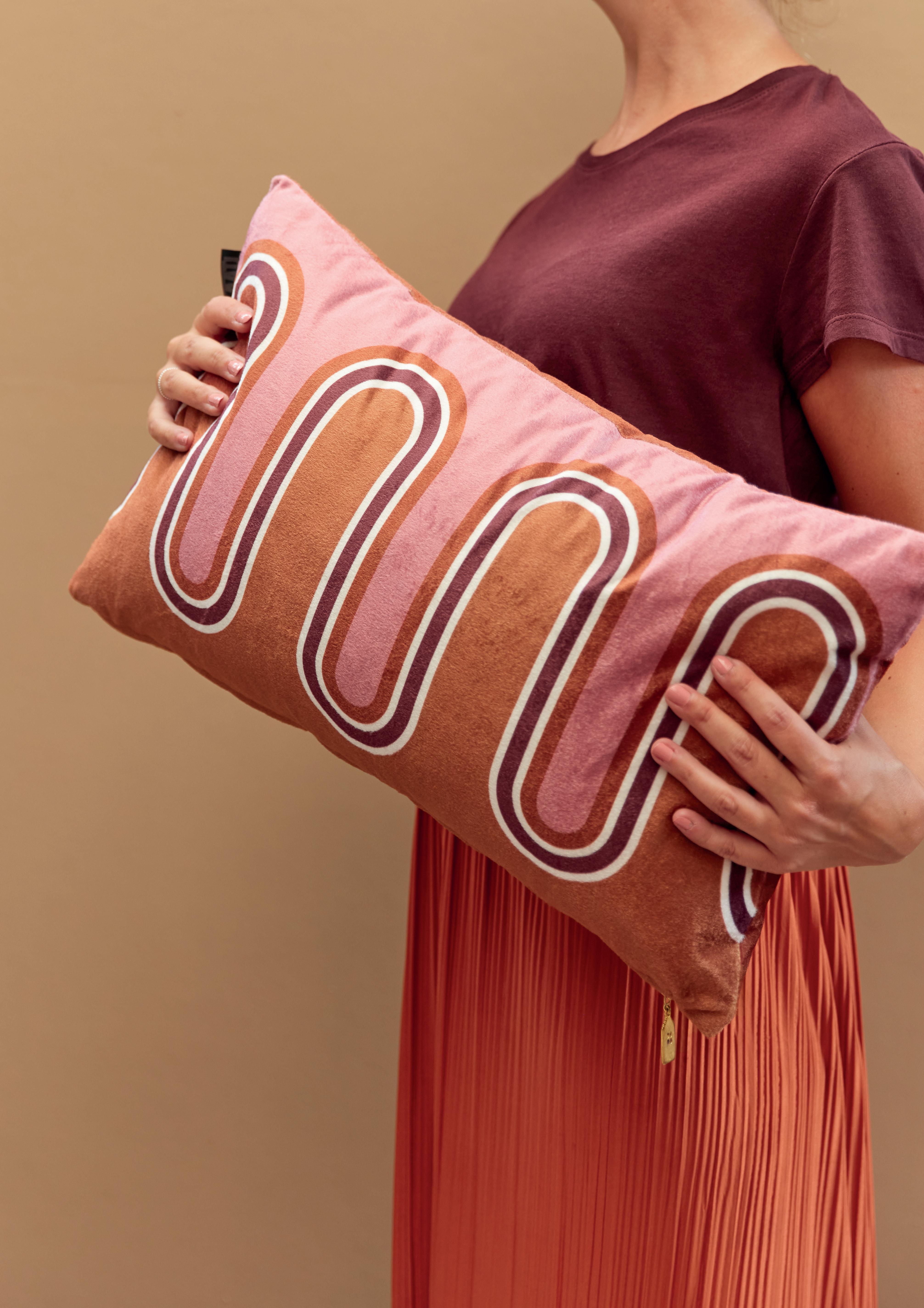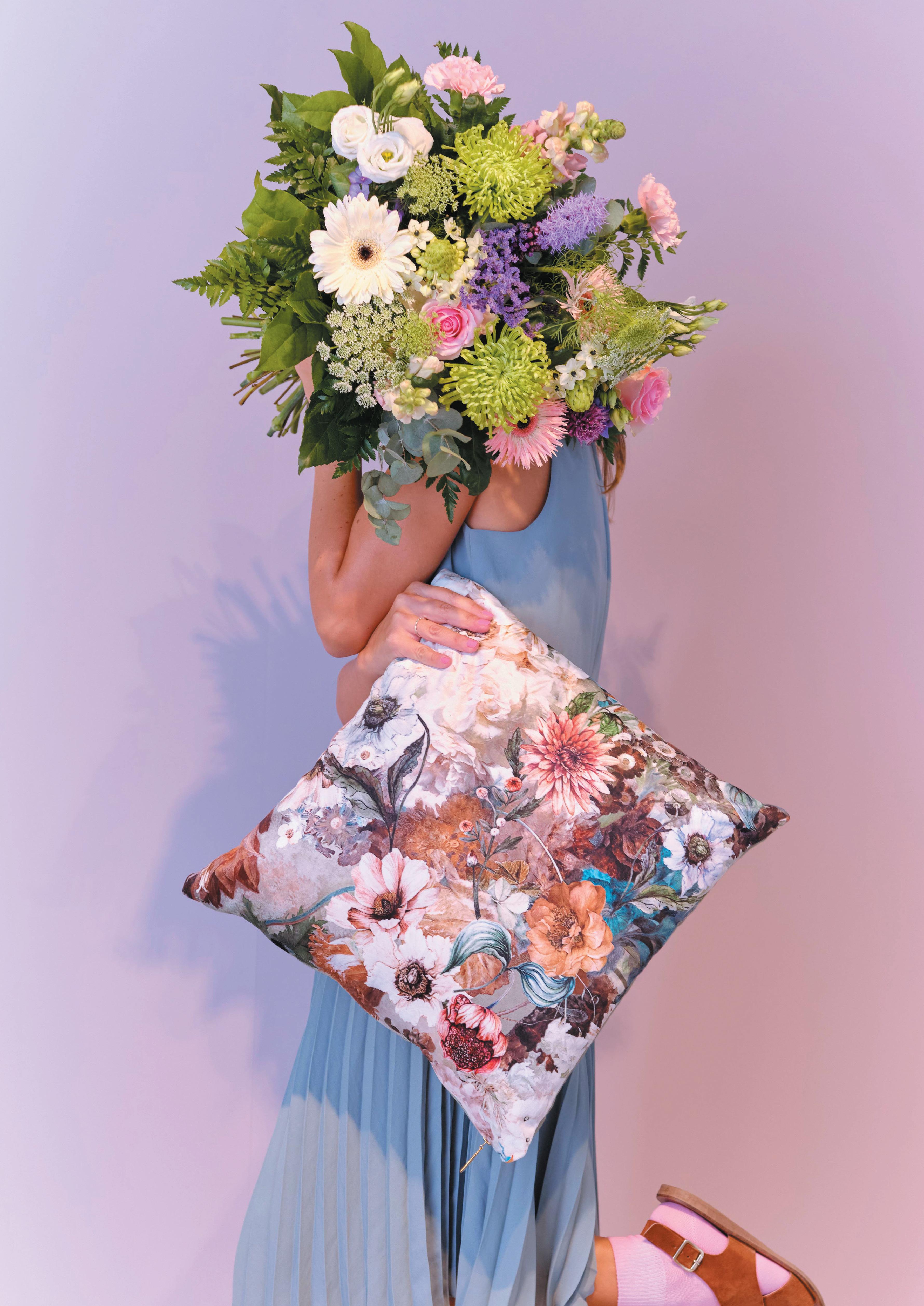 3. Anea Pastel Front: 100% polyester velvet, back: 100% cotton. Photoprint on front and uni dyed back. 43x43 cm.