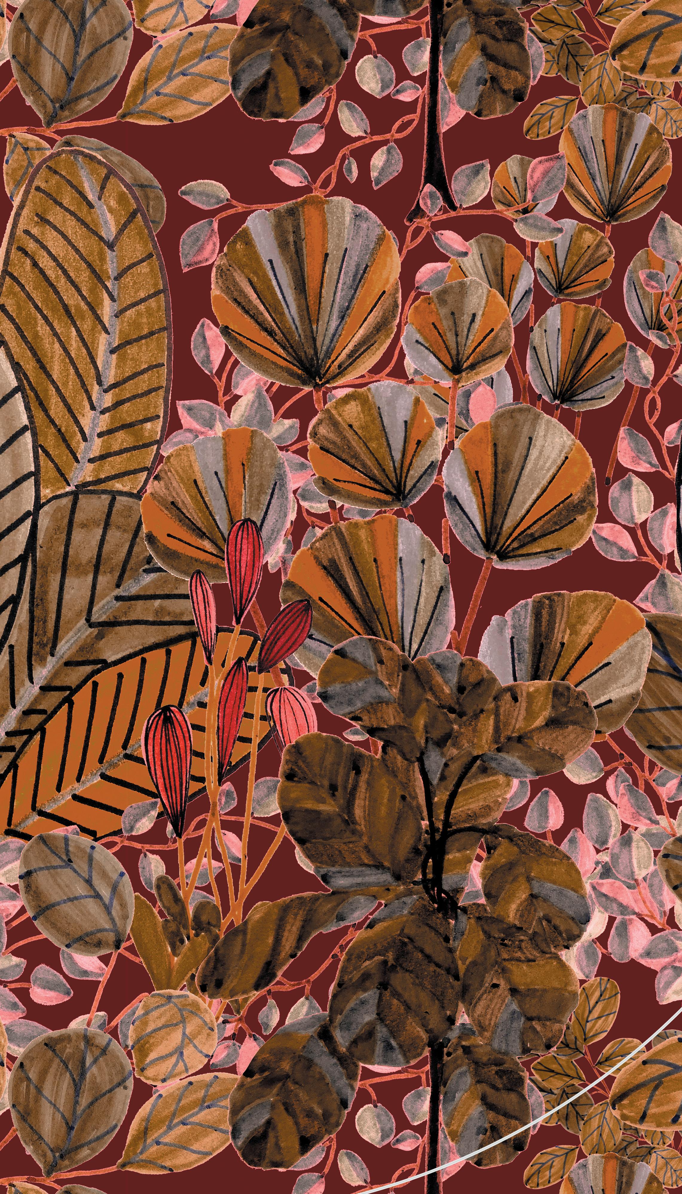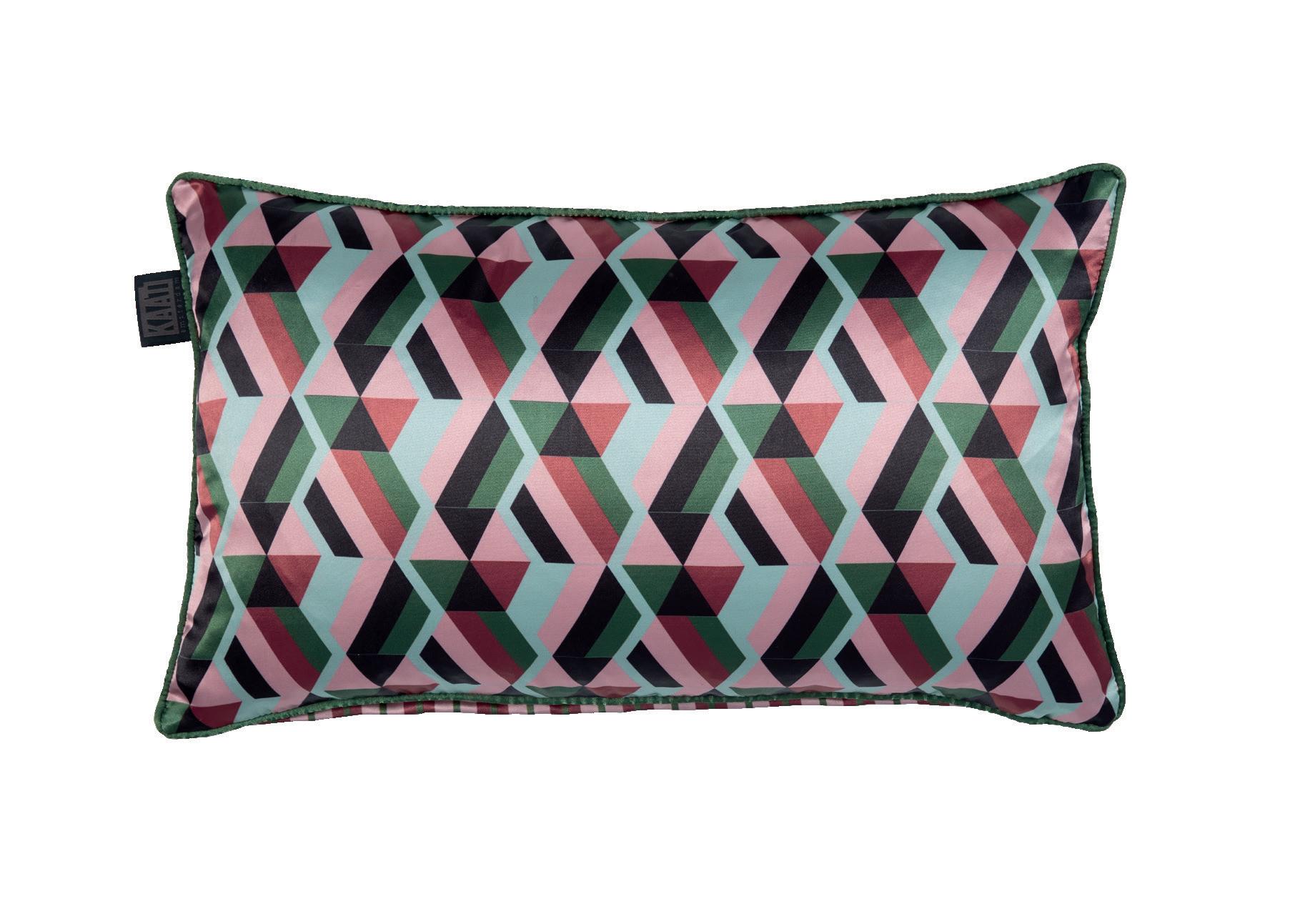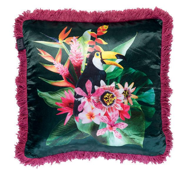 1. Phoeby Multi 100% polyester satin. Photoprint on front and back. Double-faced with cordpiping. 30x50 cm.
