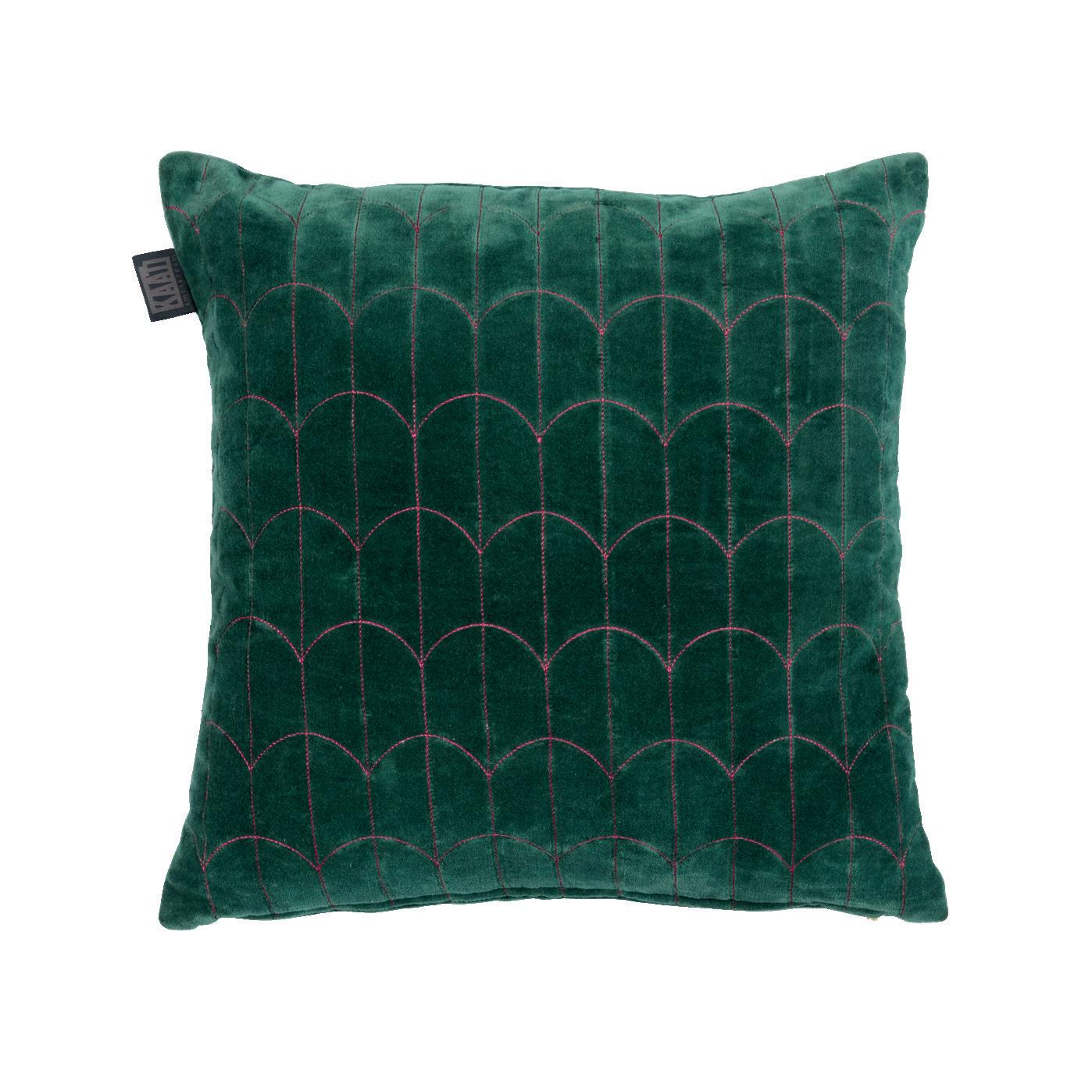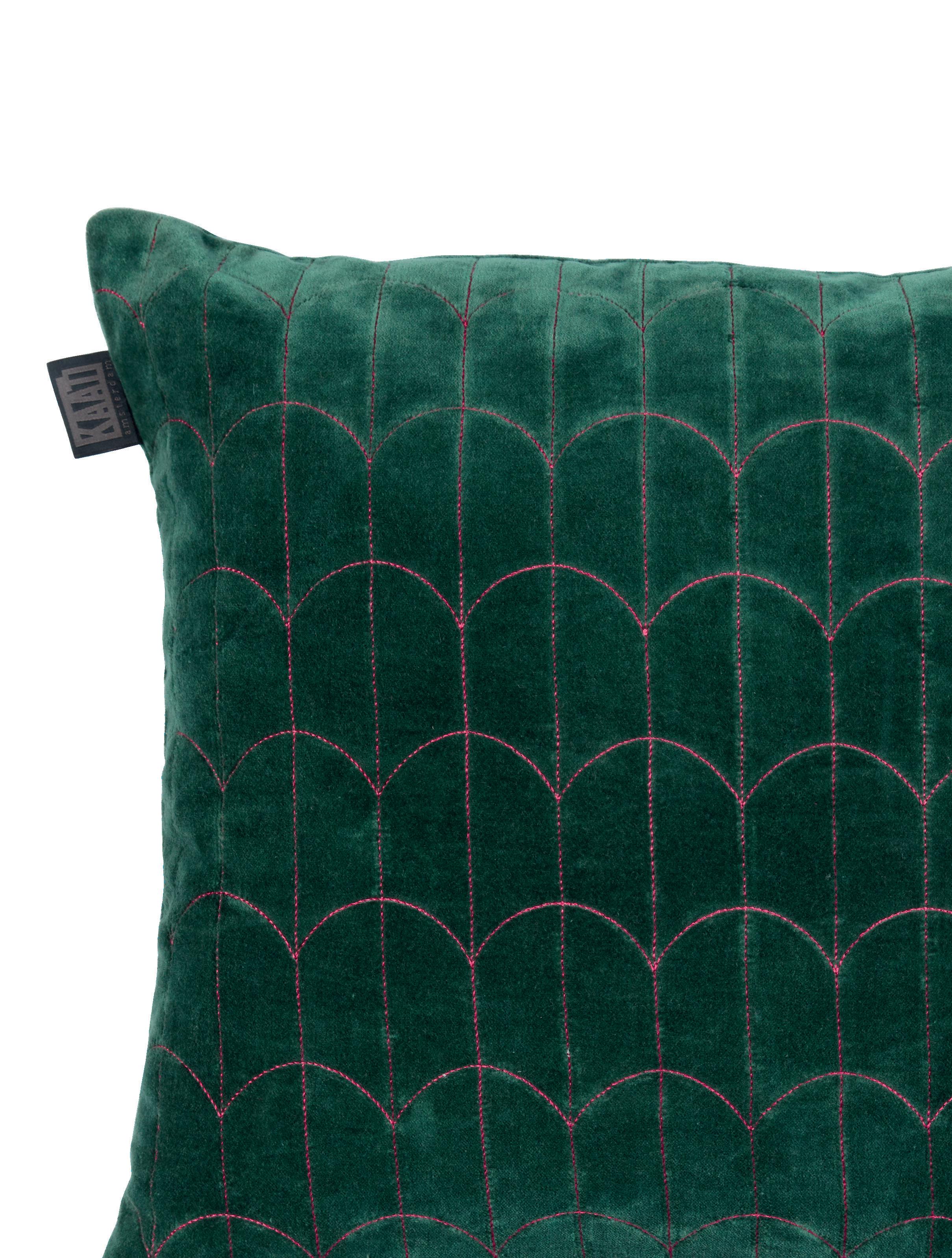 Saga Green 100% cotton velvet. Embroidery on front and uni dyed back. 43x43 cm.