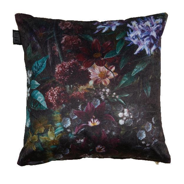 Front: 100% polyester velvet, back: 100% cotton. Photoprint on front and uni dyed back. 43x43 cm.