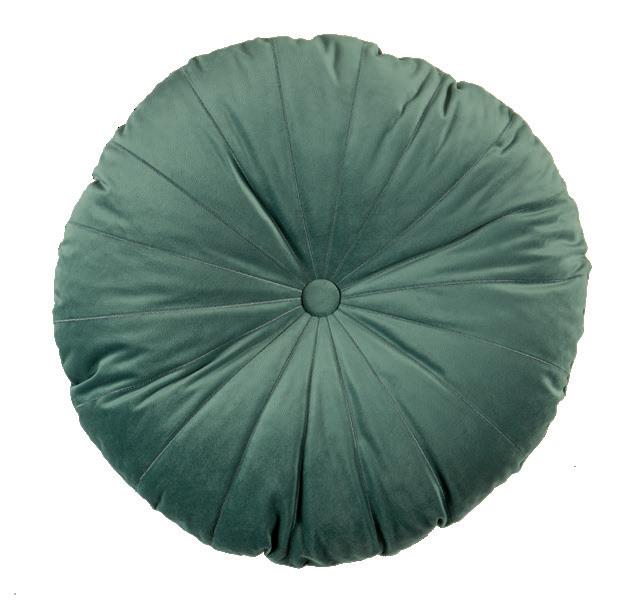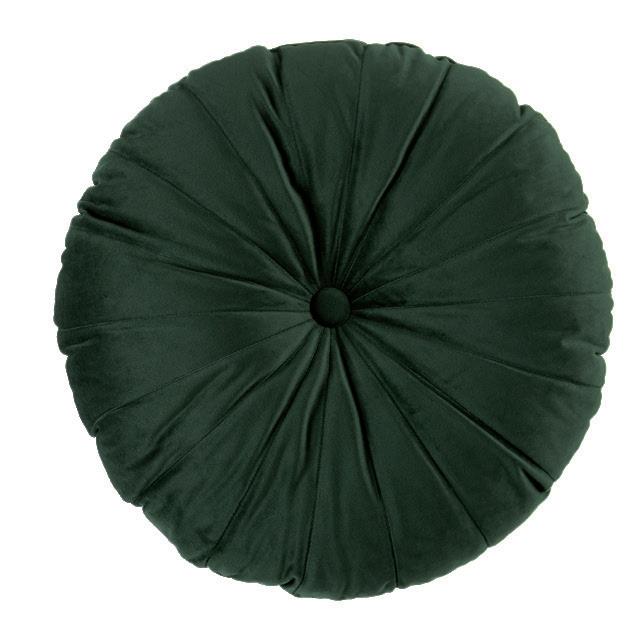 Mandarin Dark Green 100% polyester velvet. Tufted button in cushion centre. 40 cm.