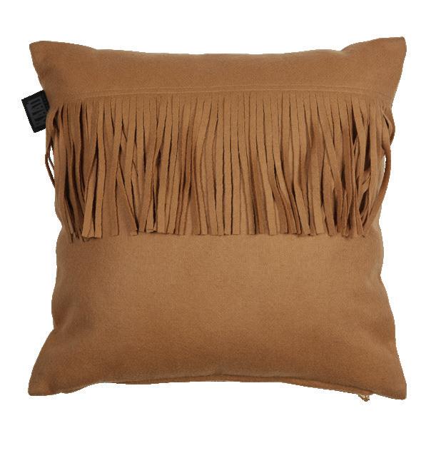Frey Brown 75% wool, 25% nylon. Fringes on front and uni dyed back. 40x40 cm.