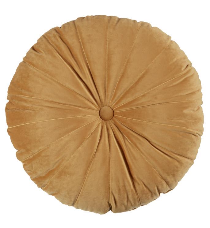 4. Mandarin Gold 100% polyester velvet. Tufted button in cushion centre. 40 cm.
