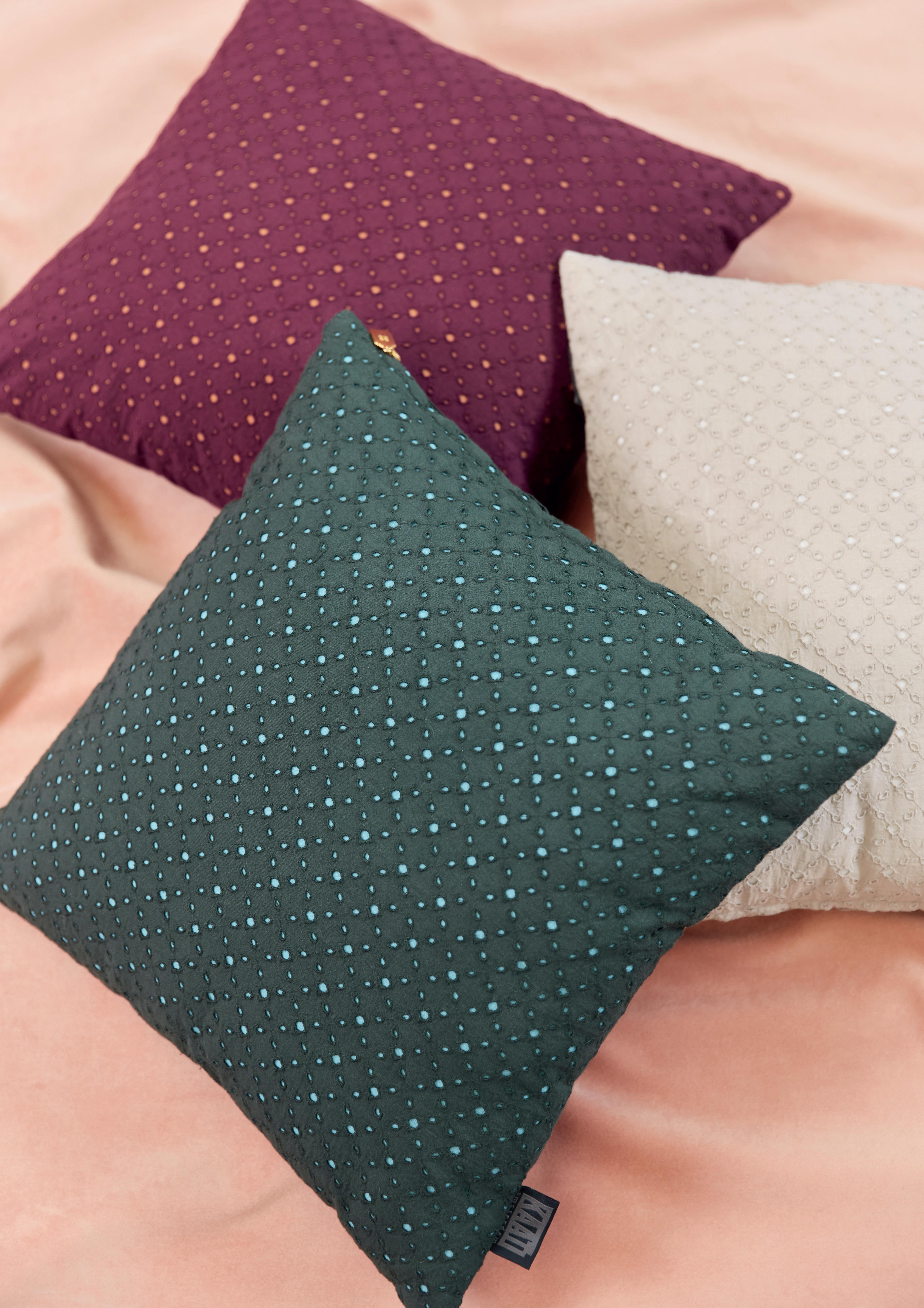 2. Chelsy Green 100% cotton. Embroidery on front and uni dyed back. 40x40 cm.